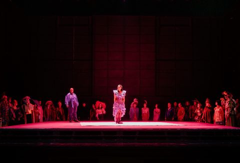 Het mag buiten nog zo donker zijn en de feestverlichting binnen nog zo verhullend: op de dansvloer wil iedereen gezien worden. In Verdi’s La traviata staat vooral Violetta Valéry in de schijnwerpers. Ze wordt omringd door blikken. Sommigen zien alleen haar glanzende uiterlijk. Anderen kijken smoorverliefd naar haar, zoals Alfredo Germont. Zijn vader maakt zich dan weer eerder zorgen als hij Violetta ziet. Om zijn reputatie te beschermen ziet hij zich genoodzaakt Violetta het onmogelijke te laten doen…